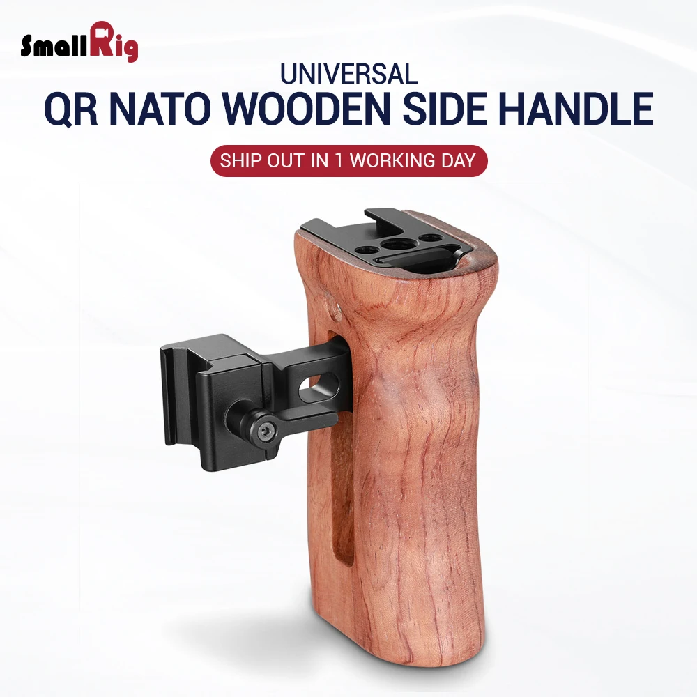 Big Deal SmallRig DSLR Camera Wooden Handle Grip Quick Release NATO Side Handle With Cold Shoe Mount 1/4 3/8